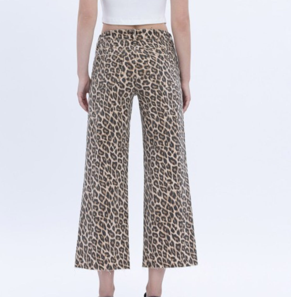 high rise crop animal print wide leg jeans