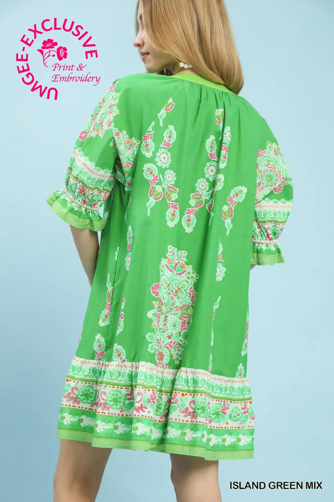 • 3/4 puff sleeves with ruffle elastic cuffs