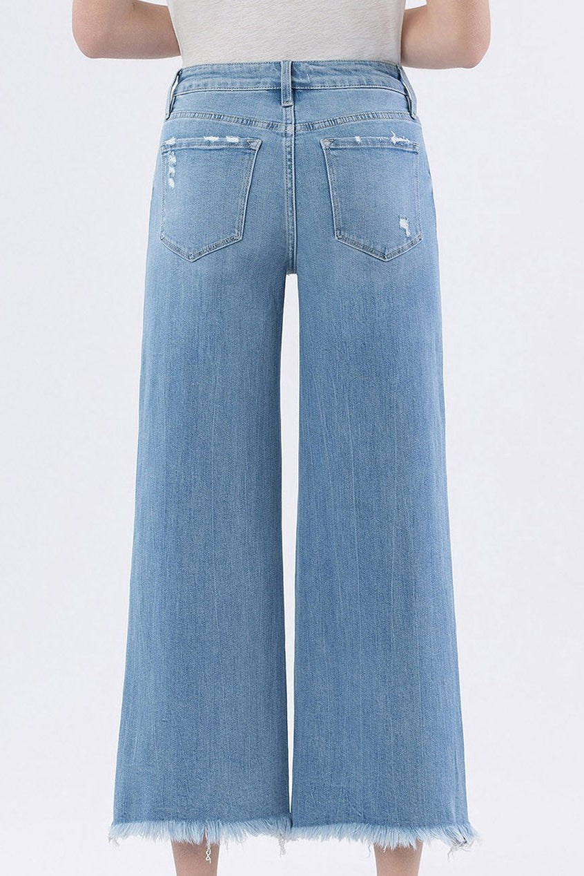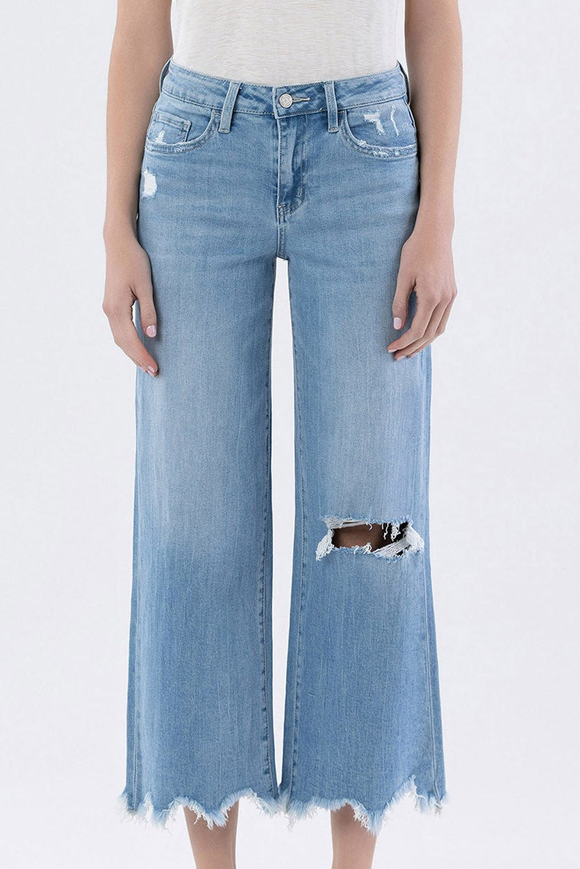 HIGH RISE DISTRESSED CROP WIDE JEANS