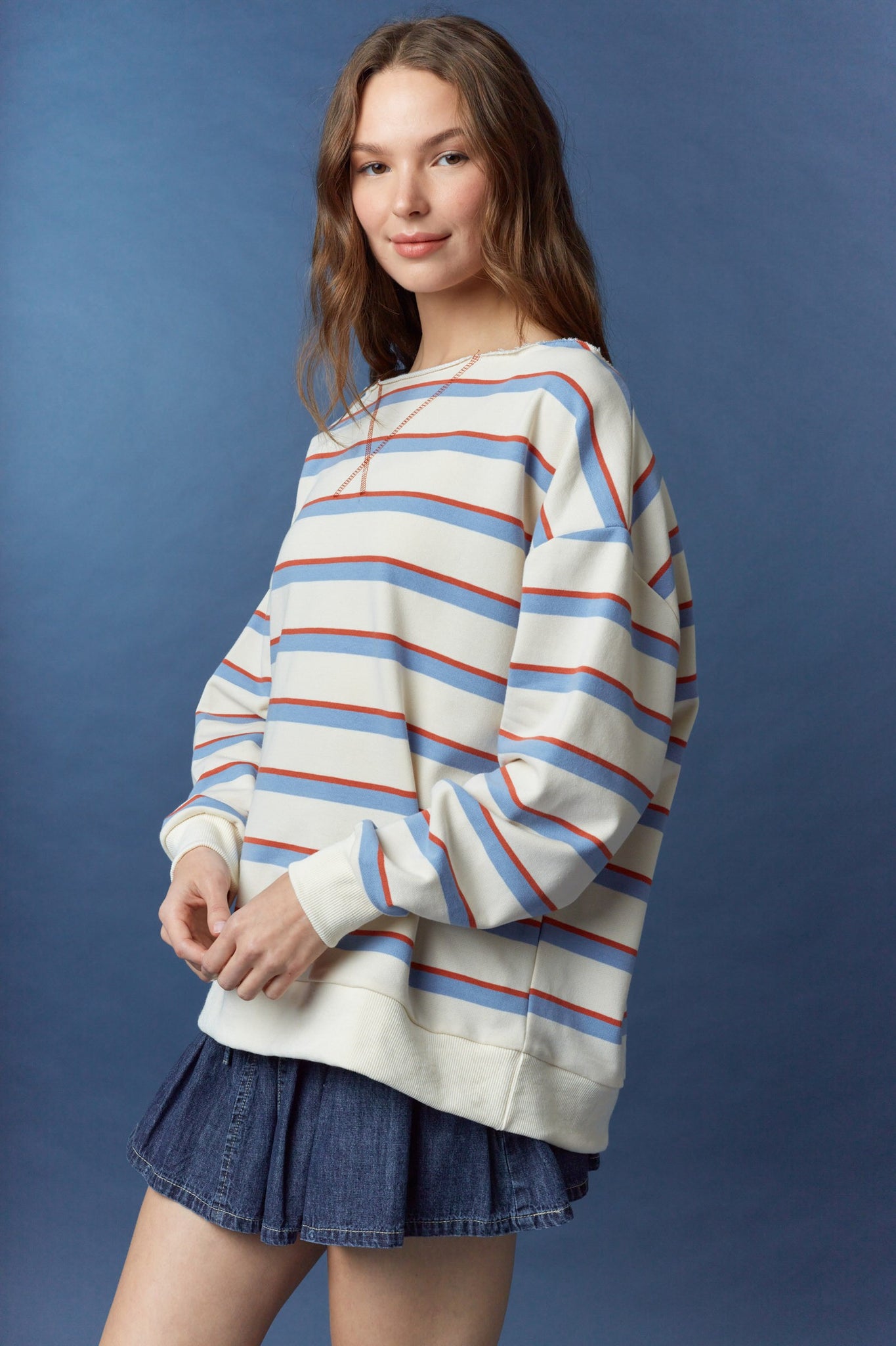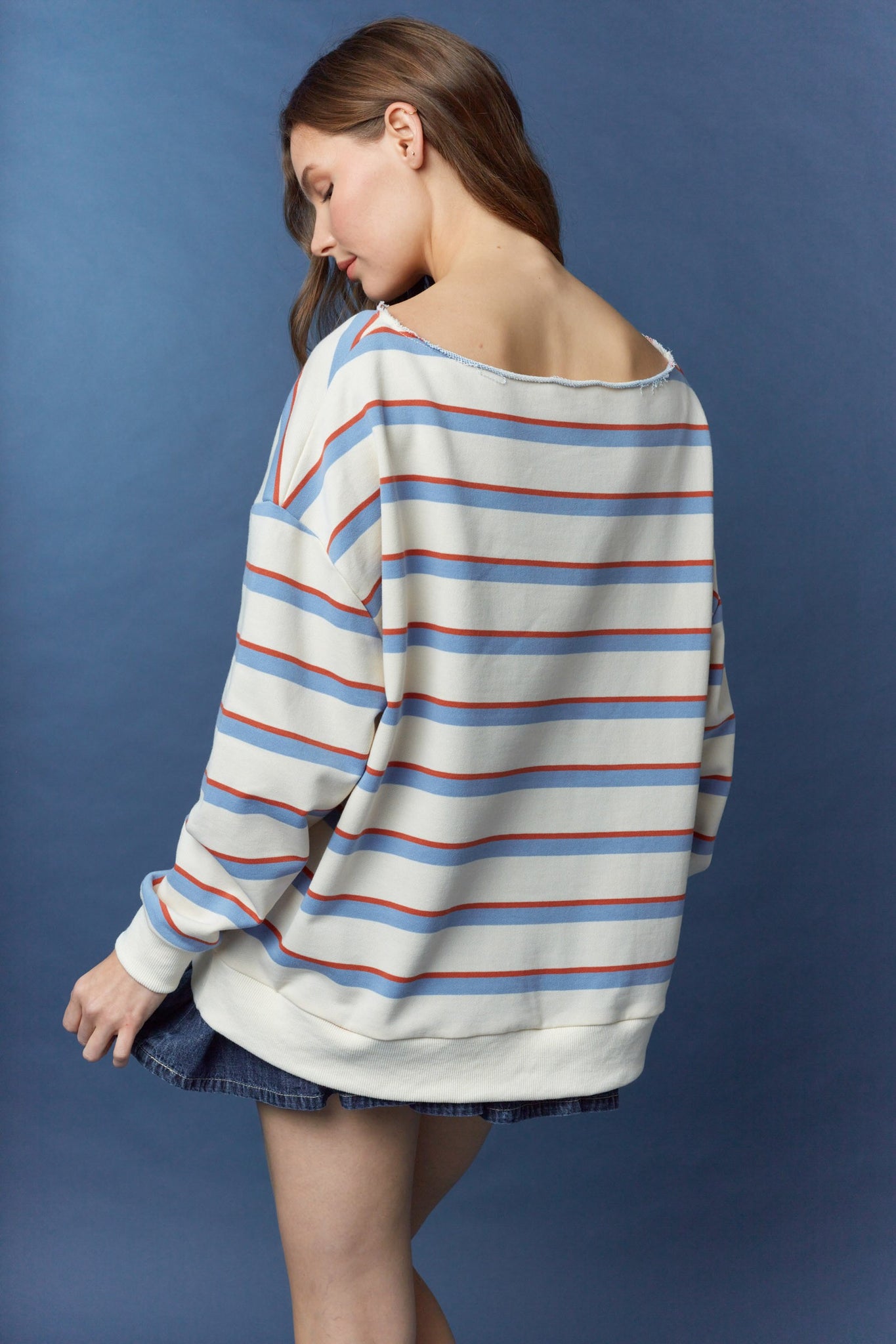 Product Name: Boat Neck Multi Striped French Terry Oversized Top